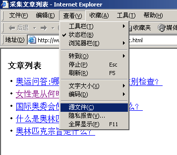 ![]() 点击查看“源文件” 点击查看,列表页源代码为如下: ![]() |